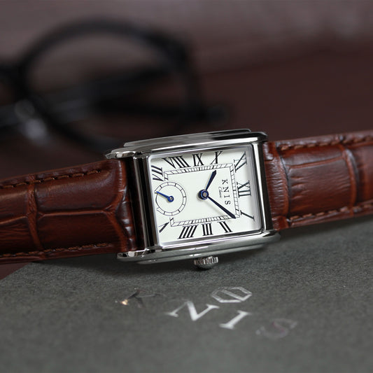 Classic Rectangular Silver Crocodile Embossed Leather Brown KN004-SVBRC