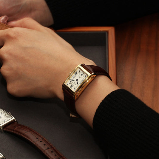 Classic Rectangular Gold Crocodile Embossed Leather Brown KN004-GDBRC