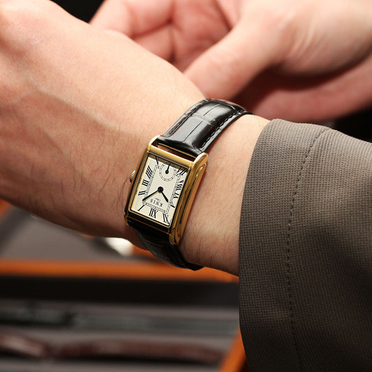 この時代に、伝統的な丸型時計とは一線を画すレクタンギュラー型(長方形)の腕時計が登場します。