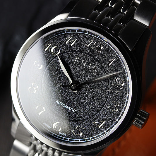 KNIS 刻 -KOKU- 自動巻き 日本製 彫金インデックス ライスブレスレット ブラック ブレゲ数字 KN005-BGBKRC