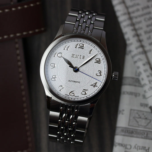 KNIS 刻 -KOKU- 自動巻き 日本製 彫金インデックス ライスブレスレット ホワイト ブレゲ数字 KN005-BGWHRC