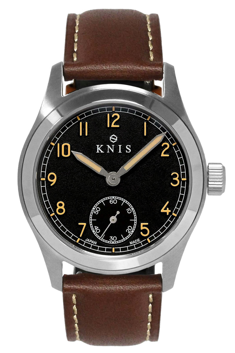 KNIS レトロミリタリーウォッチ ブラックダイヤル ブラウンレザーベルト KN003-BKBRLE