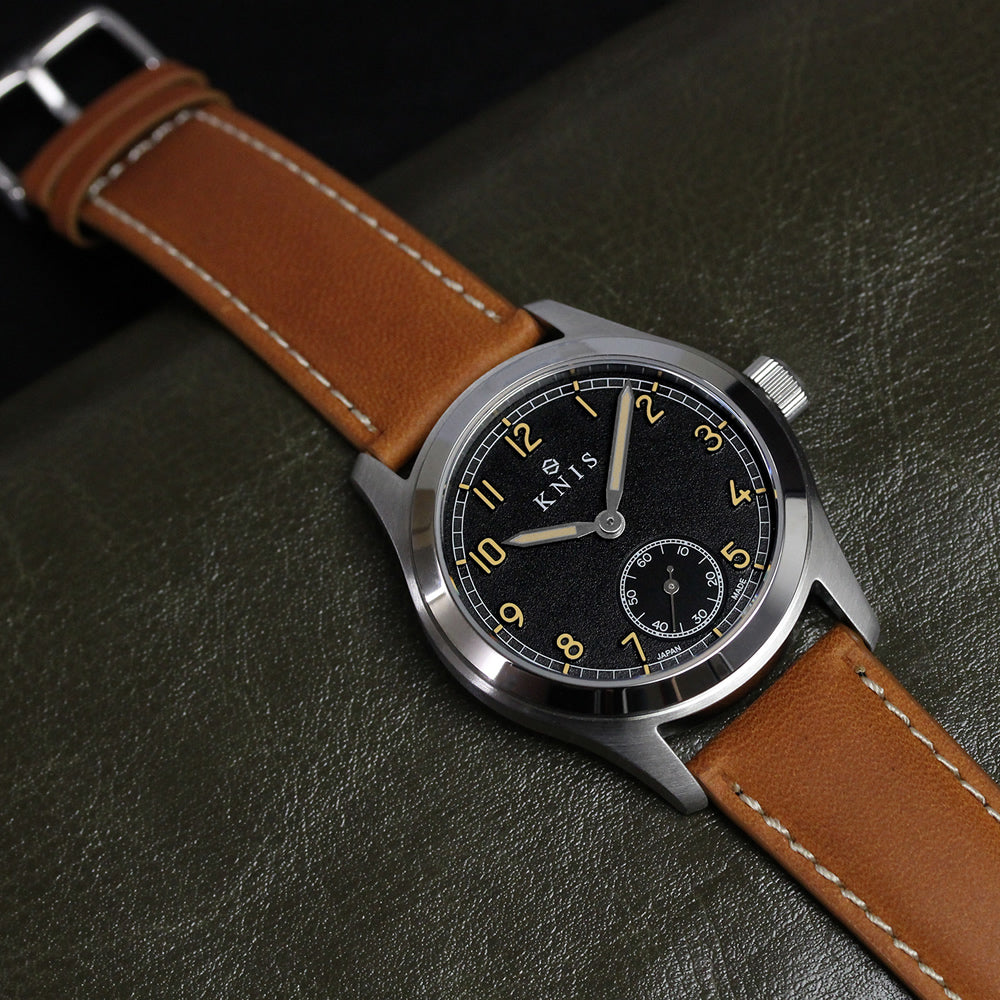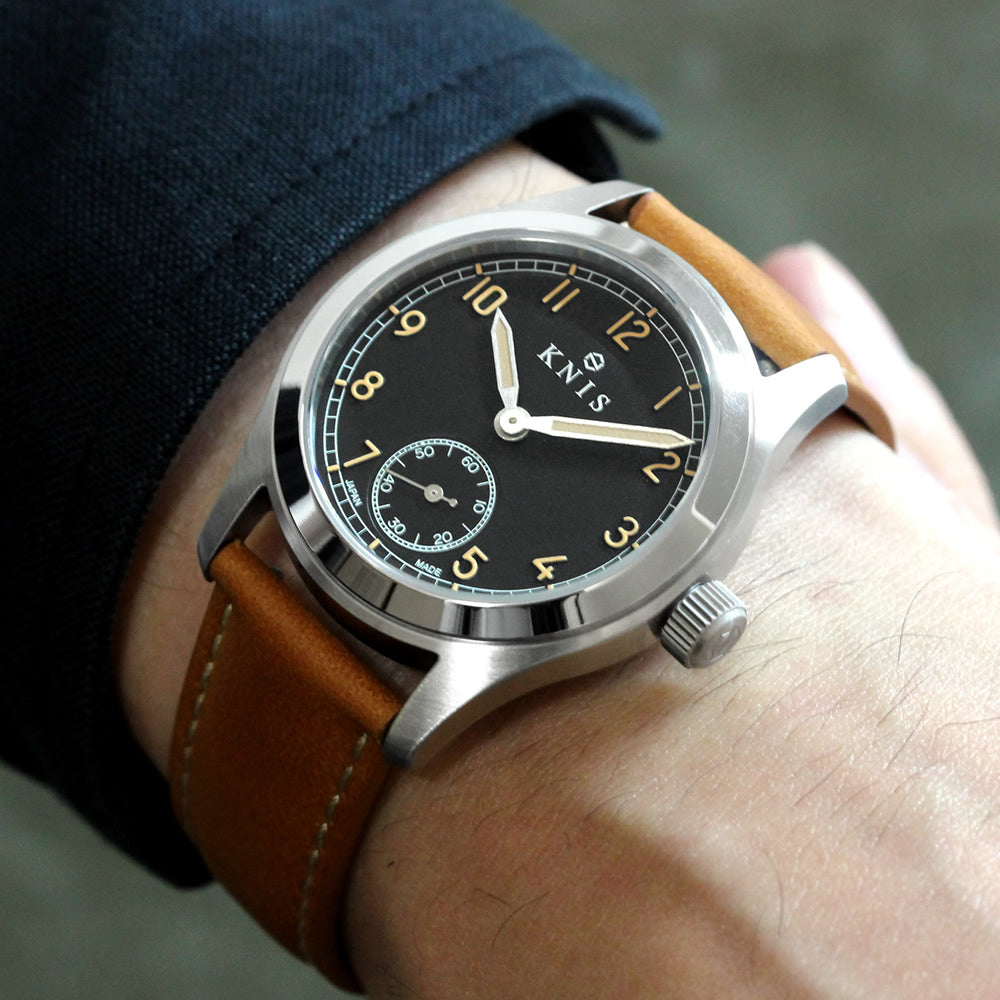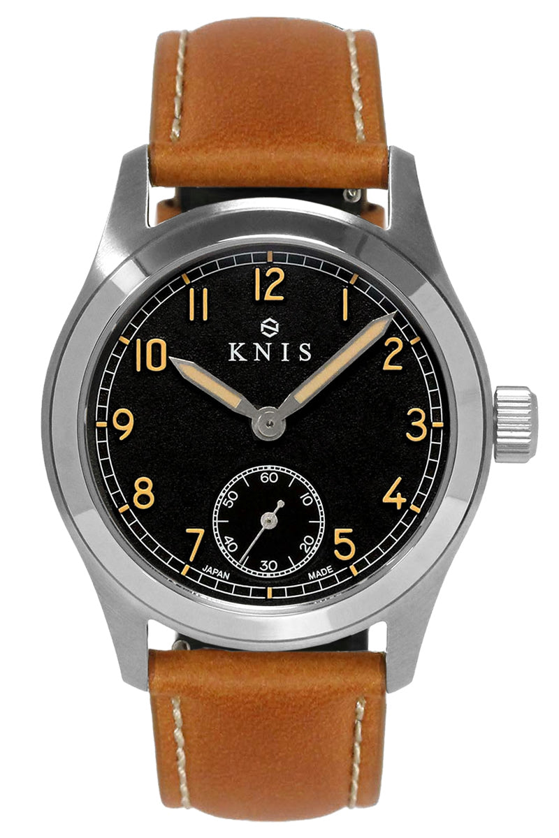 KNIS レトロミリタリーウォッチ ブラックダイヤル キャメルレザーベルト KN003-BKCALE