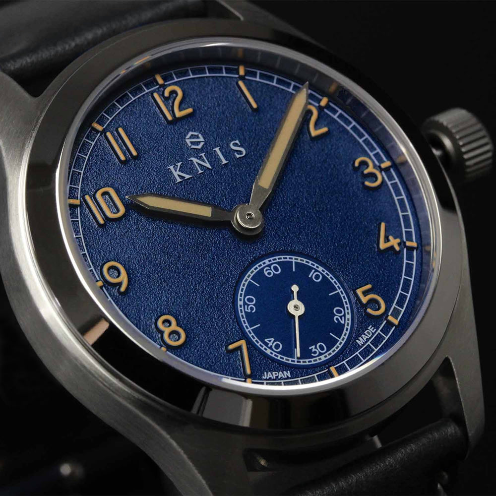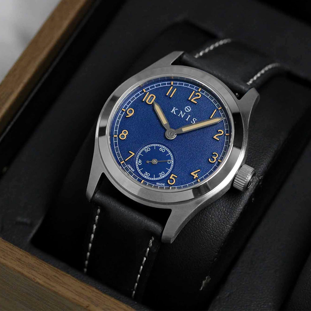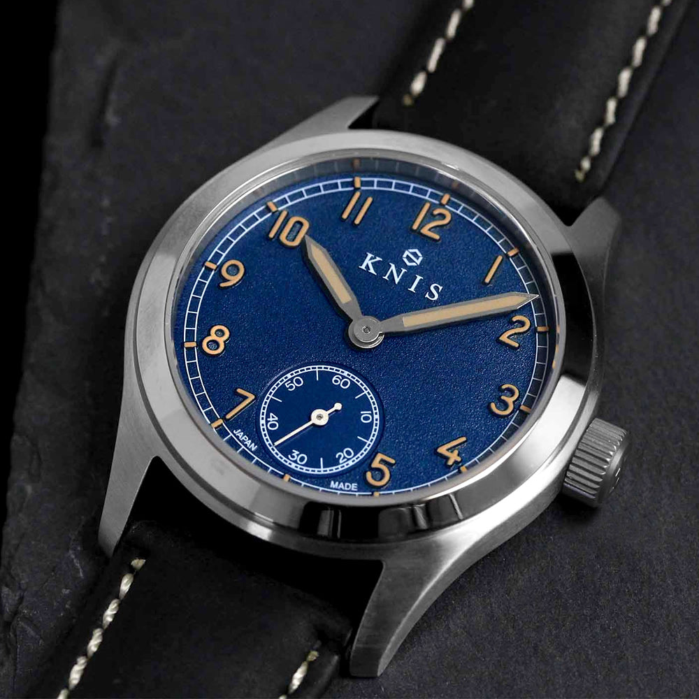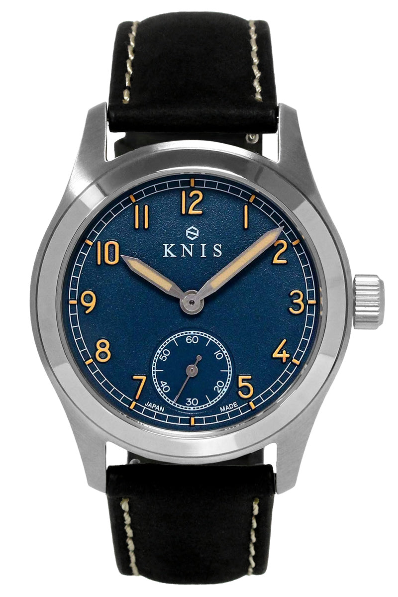 KNIS レトロミリタリーウォッチ ブルーダイヤル ブラックレザーベルト KN003-BLBKLE