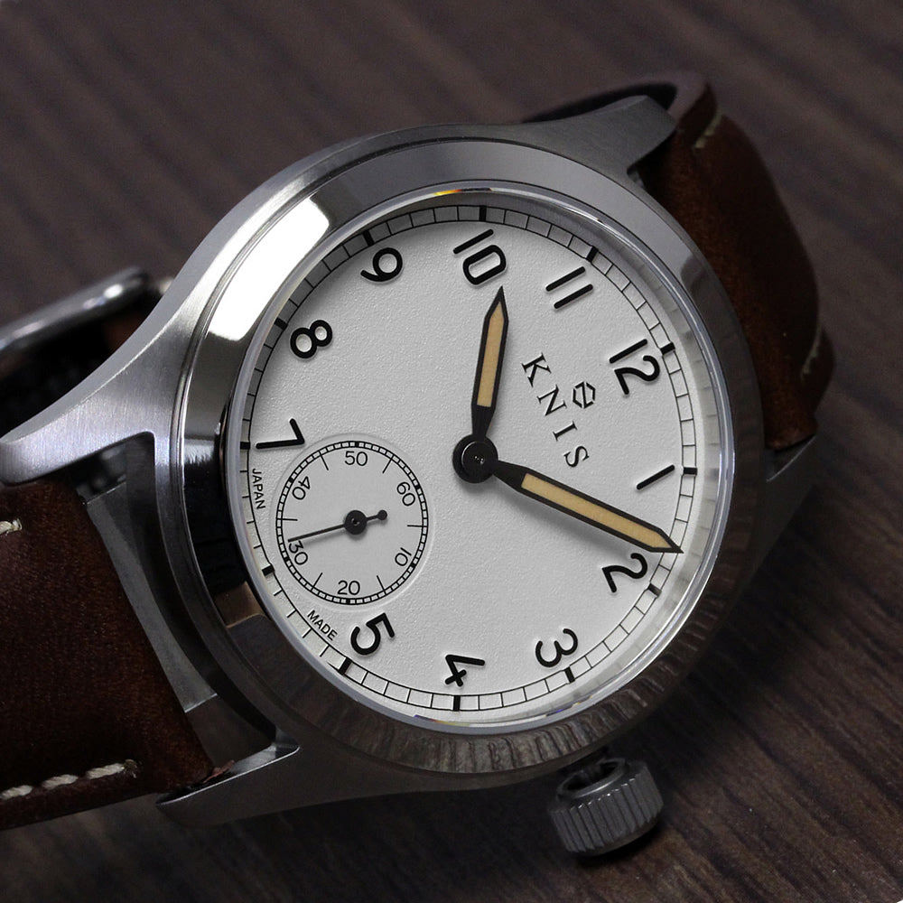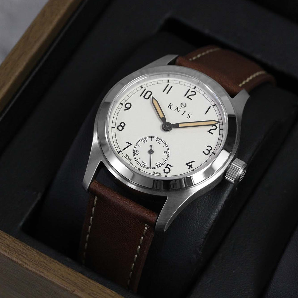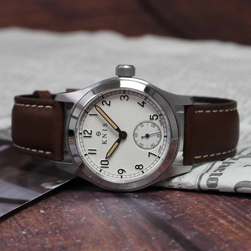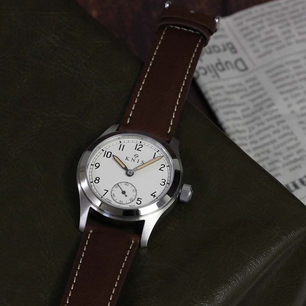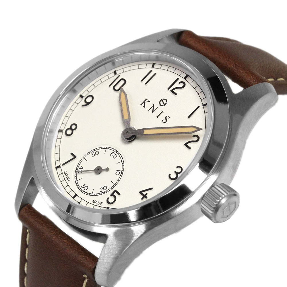 KNIS レトロミリタリーウォッチ オフホワイトダイヤル ブラウンレザーベルト KN003-WHBRLE