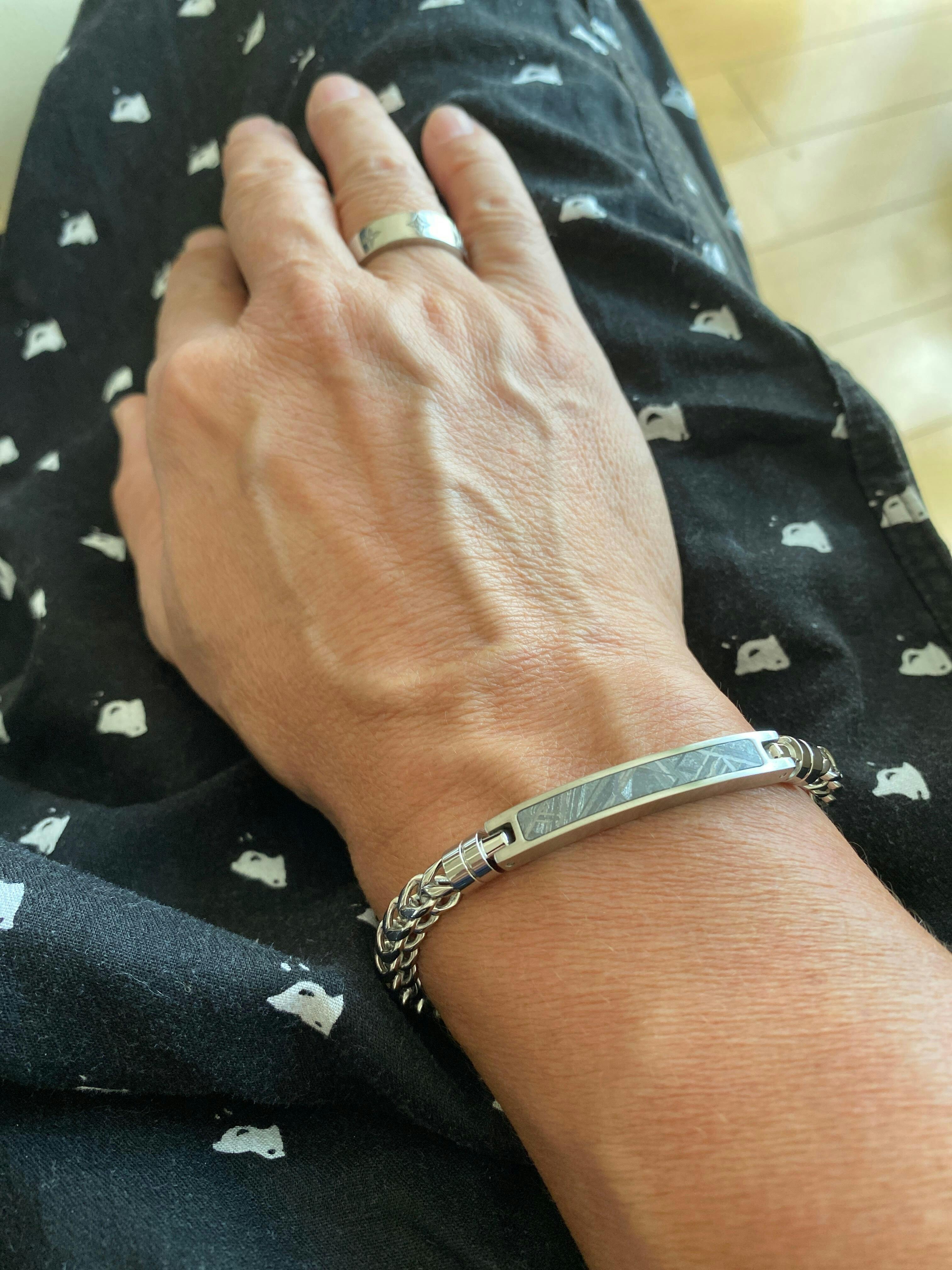 今までジュエリーを身につける事はなかったのですが、メテオライトの魅力に惹かれて購入を決意。クラウドファウンディングを通しての購入だったので長く待ちました。その間、待ちきれず、LVのブレスと指輪をそれぞれ旅先で購入。質感の高さに満足しながら、メテオライトブレスの到着を待っていました。高い質感、簡単なサイズ変更そして宇宙との繋がりを実感できるこのジュエリー、大変気に入りました。