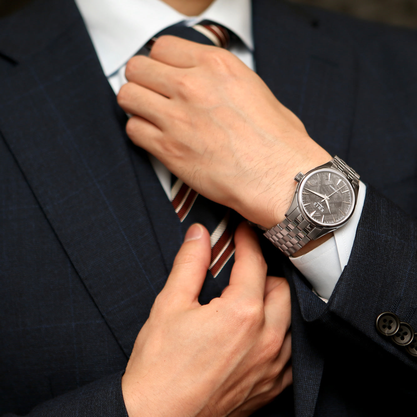 さりげない手元のお洒落をメテオライトが演出してくれてます。派手でも地味でもなく気品があってコスパも良い。よく見ればしっかりと作り込まれている。全てにおいてバランスが整った見事な一品です。