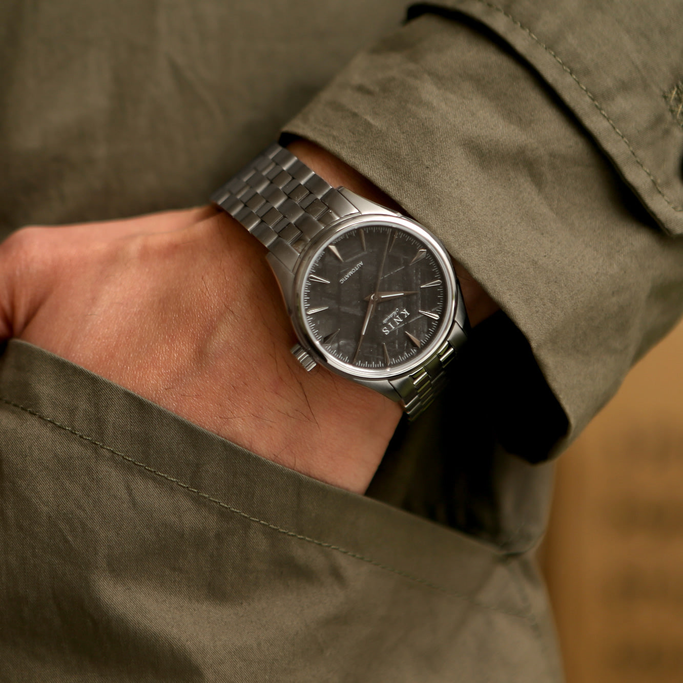 メテオライトの文字盤がとても美しく、大変気に入りました!時計としての制度はこれから検証します。