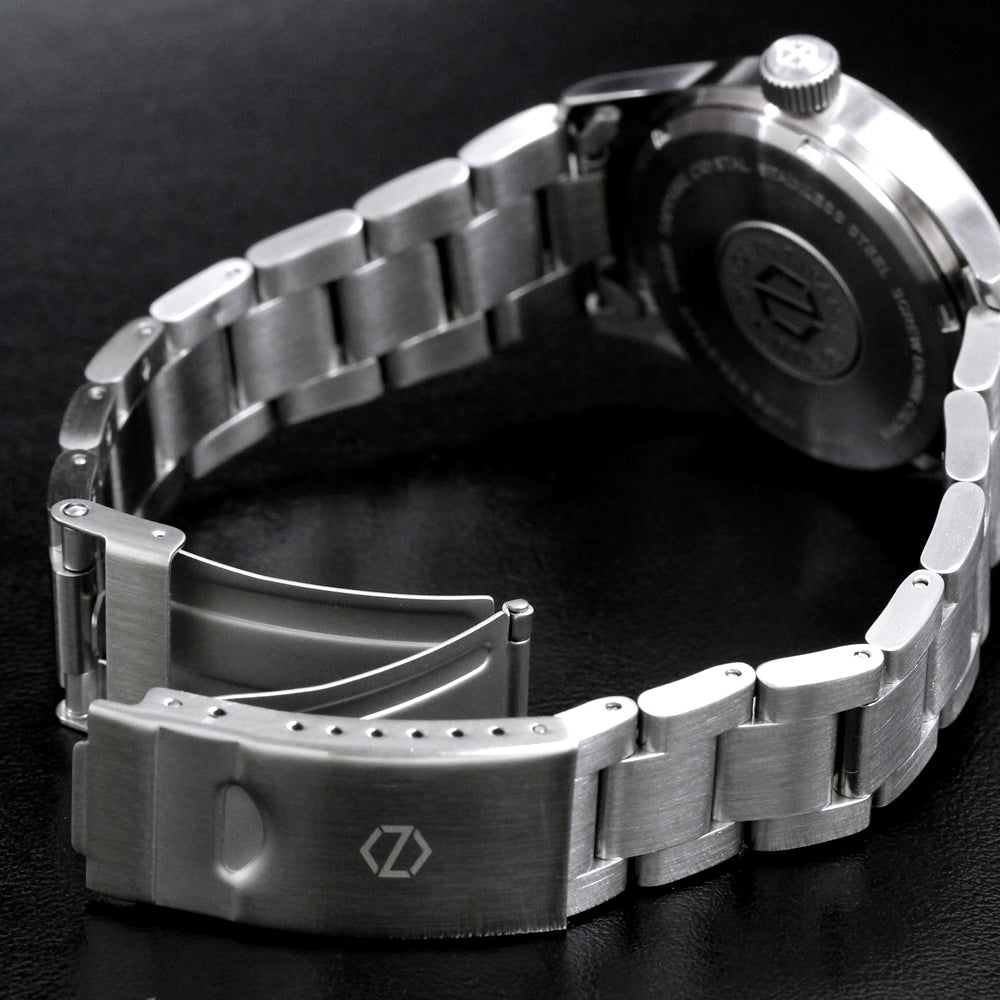 The solid stainless steel bracelet features a premium hairline (matte) finish, chosen for its refined look and durability. This high-grade finish, more costly than a polished one, enhances both scratch resistance and rust protection while adding a sophisticated, understated style to the watch.