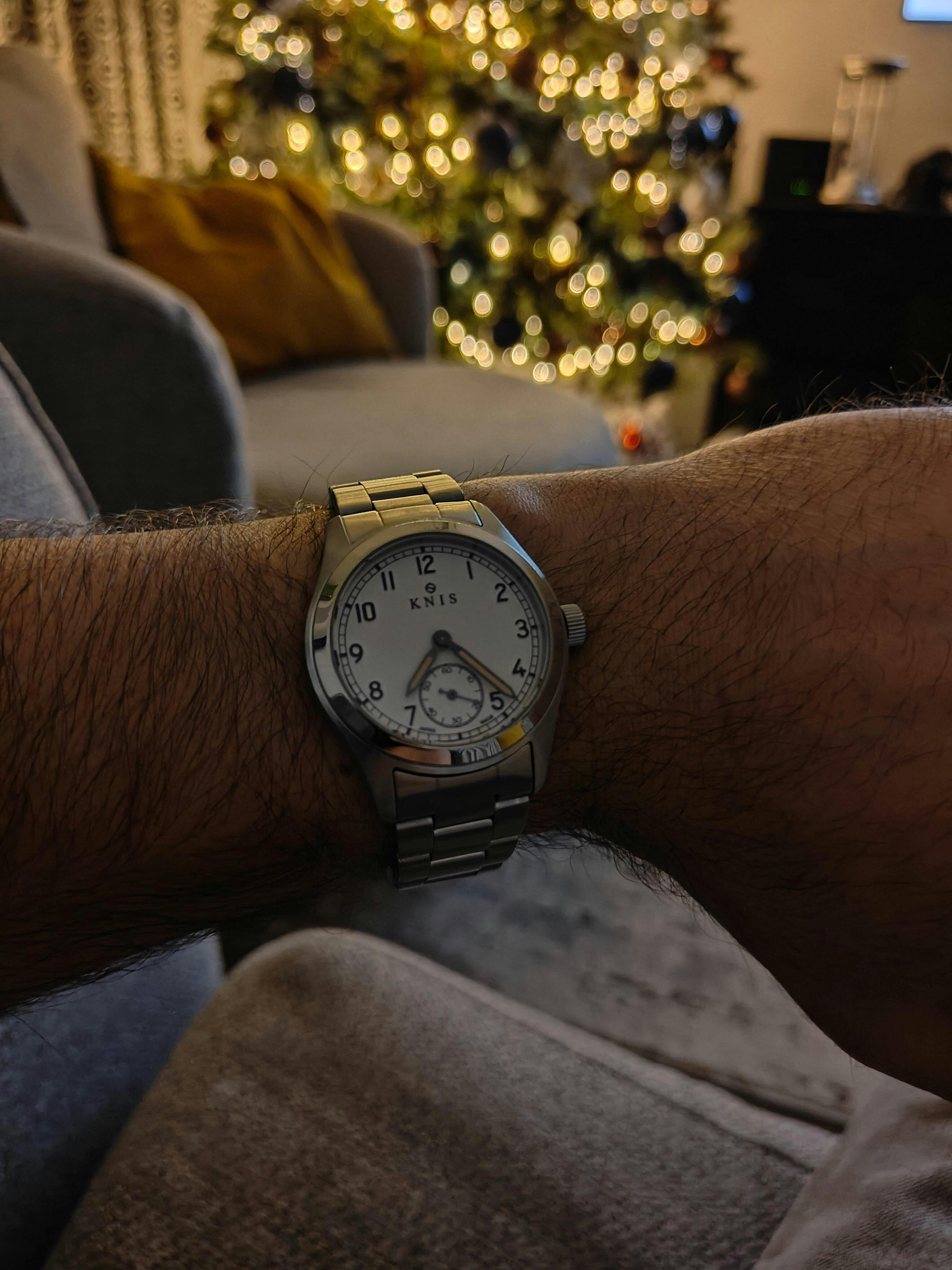 While many overseas military watches feature larger cases (40mm or more), KNIS has crafted a 38mm case to suit slimmer wrists, ensuring a comfortable fit with a refined look. This thoughtful sizing balances military style with elegance, making it versatile for a range of wrist sizes. (Model’s wrist circumference: 16.5cm)