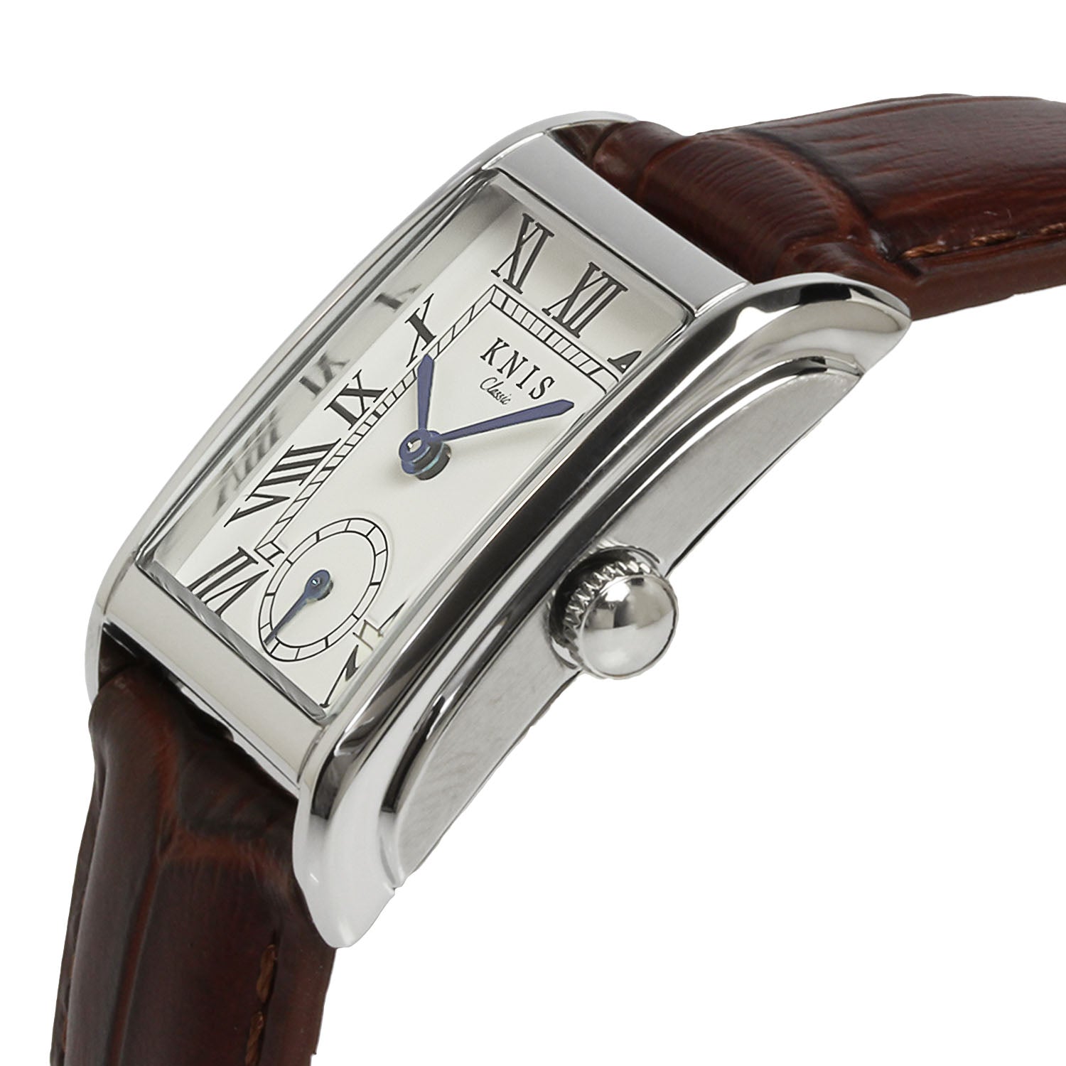 This classic rectangular dress watch looks beautiful on slender wrists. It exudes urban sophistication and is designed to subtly add a touch of elegance to any occasion, whether dining out at a restaurant or casual outings.