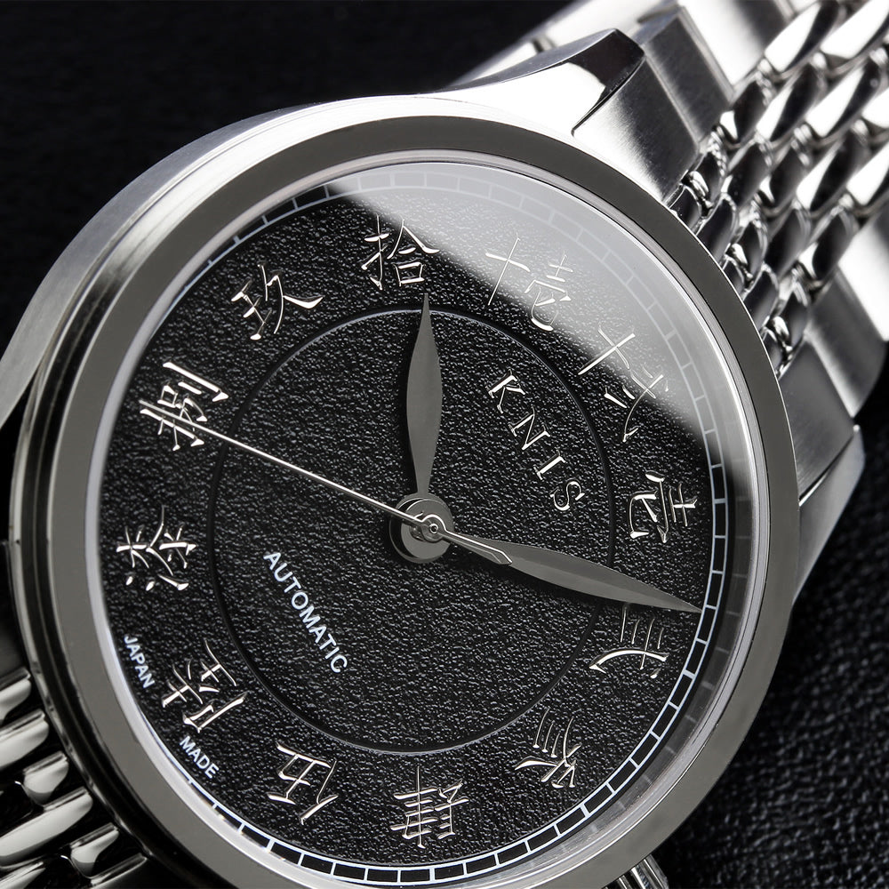 KNIS KOKU Automatic KANJI Black / Engraved Dial Stainless Steel Bracelet (KN005-KJBKRC)