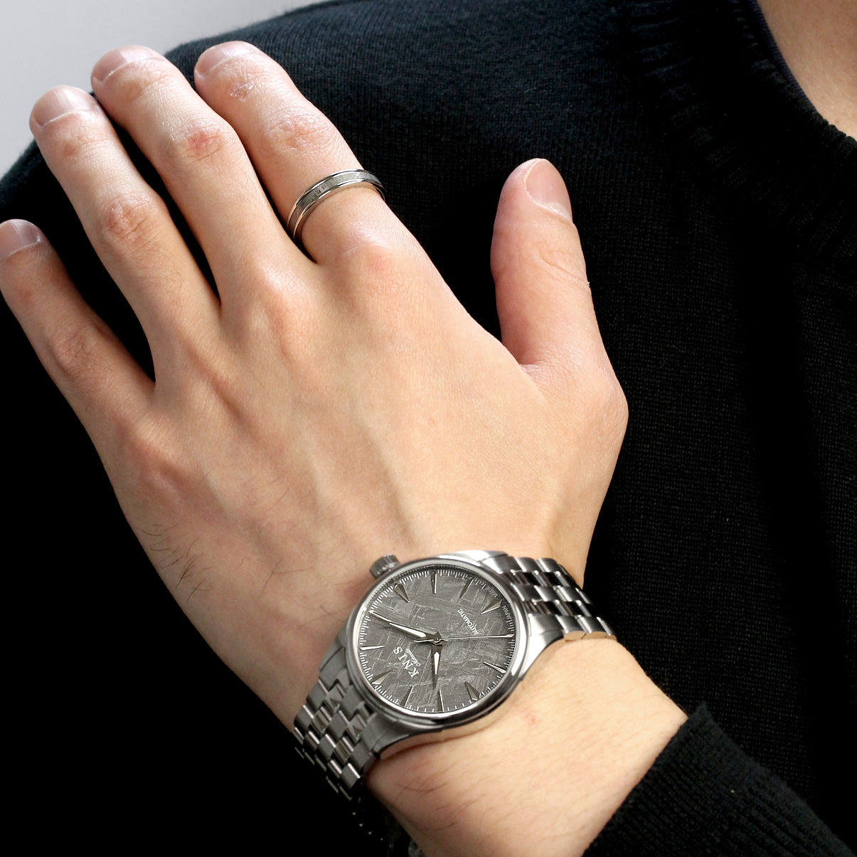 The design allows you to enjoy the beauty of meteorite, and is simple yet striking, with a basic design form that is not influenced by trends.